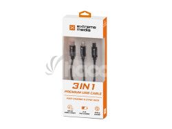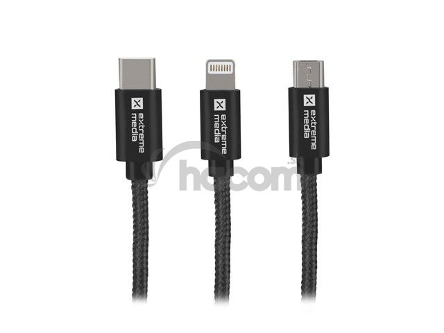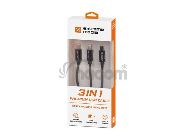 USB štandard existuje v niekoľkých variantoch konektorov. Užívatelia majú často zariadení s rôznymi typmi konektorov a každé zariadenie tak musí byť nabíja alebo pripojené cez rôzne zdrojom s USB.Kábel Combo 3 v 1 Extreme Media má tri konektory kompatibilné s rôznymi konektormi: micro USB, Lightning a USB Type C. Teraz potrebujete iba jeden kábel.