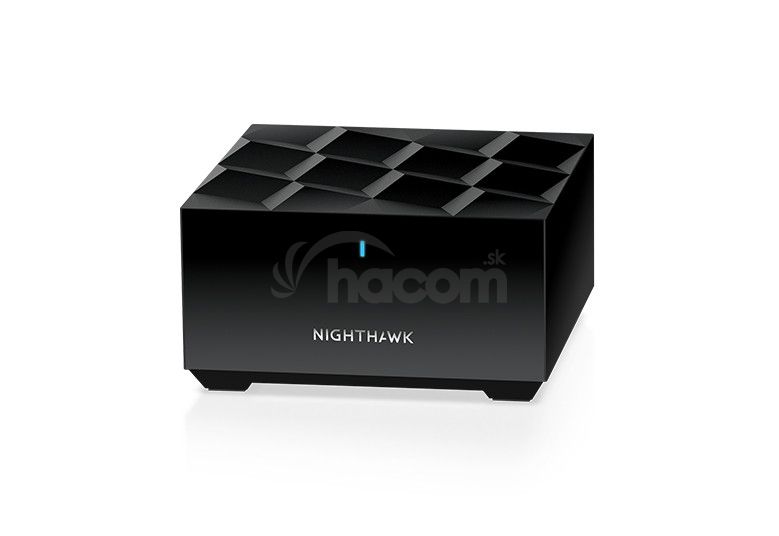 Netgear AX1800 Nighthawk Dual-Band WiFi 6 Mesh Add-on Satellite. Rozšírte svoje pokrytie ešte ďalej. Pridajte do svojho existujúceho Nighthawk Mesh výkonné pokrytie 1 500 štvorcových stôp a užite si pokročilú domáce WiFi pre potreby streamovanie videa a online hranie. Kompatibilné iba so smerovačmi Nighthawk Mesh a systémy WiFi (modely: MK62, MK63, MK64).* Najnovšia technológia WiFi 6 - Vylepšená trojpásmová technológia navrhnutá pre rýchlejšie a spoľahlivejšie pripojenie, ktorá zvládne 25 alebo viac zariadení pre plynulejší streamovanie a kapacitu pripojenia.