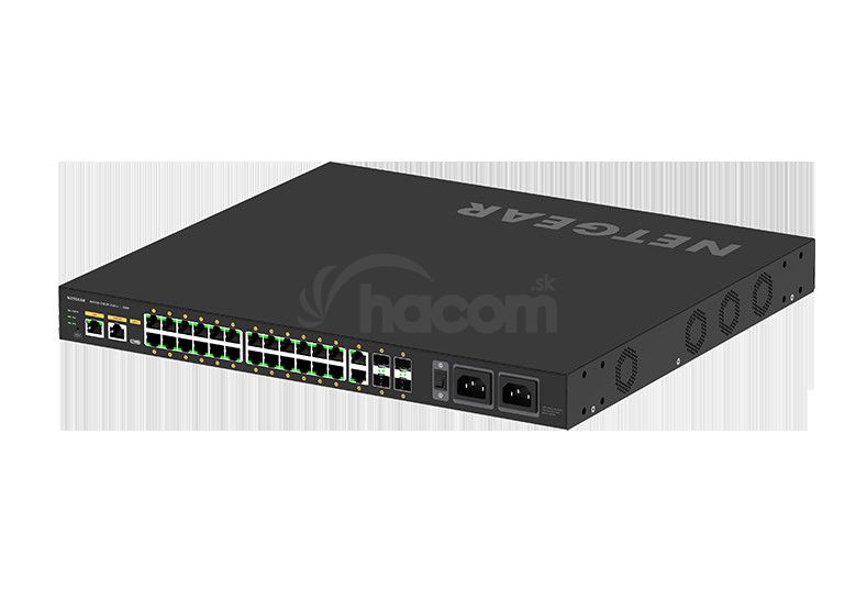Netgear M4250-26G4F-PoE++ (GSM4230UP) 24x1G PoE++ 1440W, 2x1G a 4xSFP Managed Switch. NETGEAR AV Line M4250 je rad prepínačov od základu podporujúcich 1Gb audio a video cez IP s prispôsobeným hardvérom a softvérom. Model M4250 bol postavený od základu pre rastúci trh AV cez IP a kombinuje roky sieťových znalostí v oblasti AV s radmi M4300 a M4500 s osvedčenými postupmi popredných odborníkov na profesionálnom trhu.Predkonfigurované na použitie ihneď po vybalení