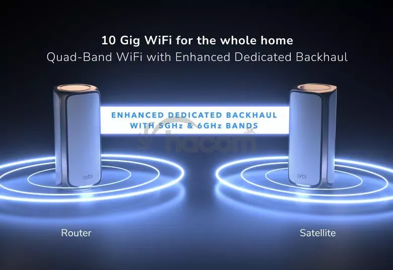 NETGEAR ORBI9 QB WIFI7 3P 1Y ARMOR BLK BNDLCelodomáci štvorpásmový systém Mesh WiFi 7 - doplnkový satelit