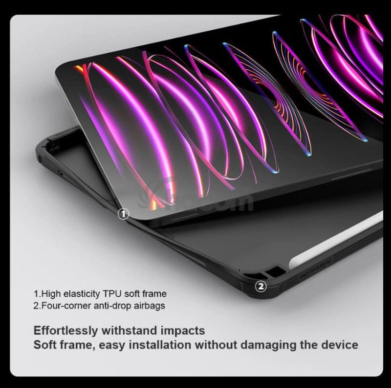 CamShield Pad zadný kryt je multifunkčný kryt navrhnutý pre tablety, ktorý spája štýl, ochranu a praktické funkcie do jedného.Kryt je vyrobený z kombinácie odolných materiálov TPU a PC, ktoré zaisťujú vynikajúcu ochranu proti pádu, poškriabaniu, nárazom i ohýbaniu.