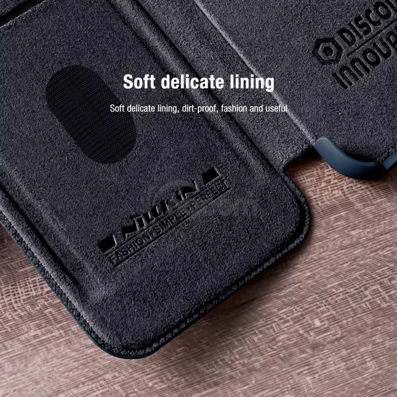 Nillkin QIN Book PRO púzdro je vyrobené z kvalitnej PU kože, otvára sa do boku ako knižka a navyše je oproti klasickému QIN Book vybavené posuvným krytom šošoviek fotoaparátu.