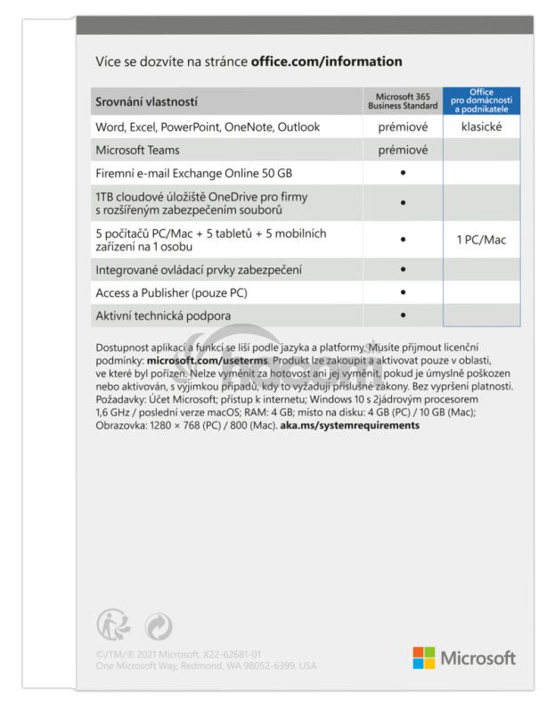 Kľúčové vlastnosti Office 2021 pre domácnosti a podnikateľov, SK BOX