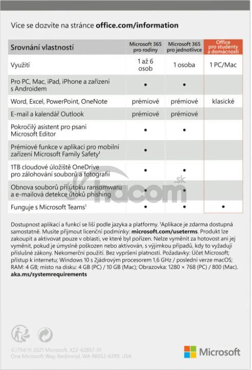 Obsah balíka Microsoft Office 2021 pre domácnosti a študentov: