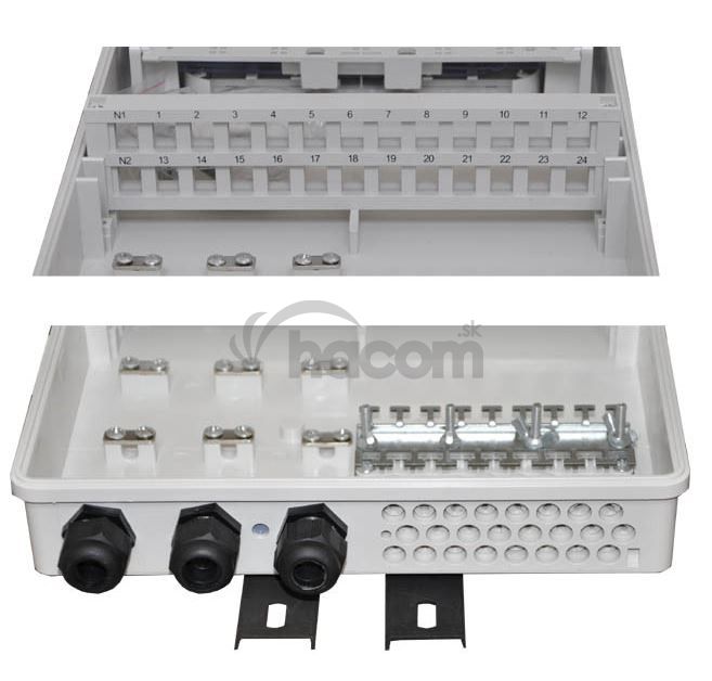 - Optický FTTH spojovací box pre 24 pigtailov vr. 35335