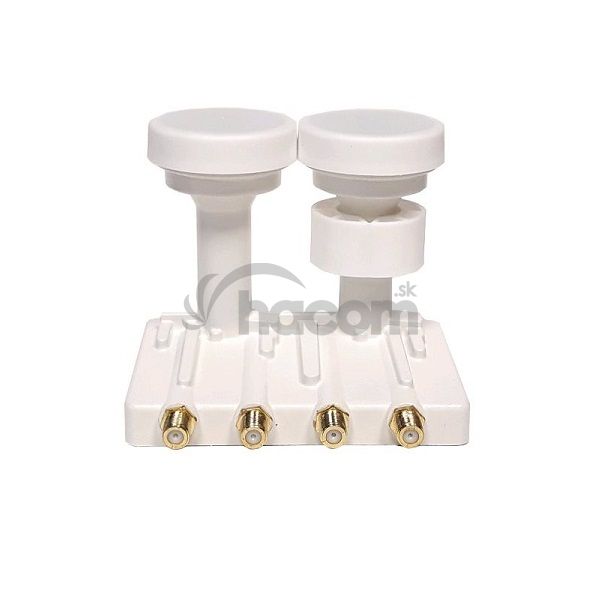 Univerzálny LNB monoblock twin konvertor Opticum je vhodný pre 4 satelitné prijímače pre dve družice Astra 19,2° a Astra 23,5°.,1 dB.