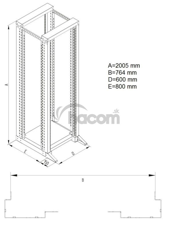 * 19 "profilový rám je vhodný pre umiestnenie priamo na podlahu pomocou nivelačných nožičiek alebo koliesok (kolieska nie sú súčasťou príbalu).