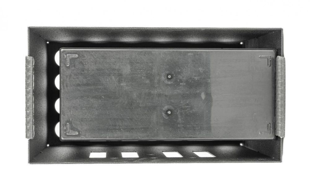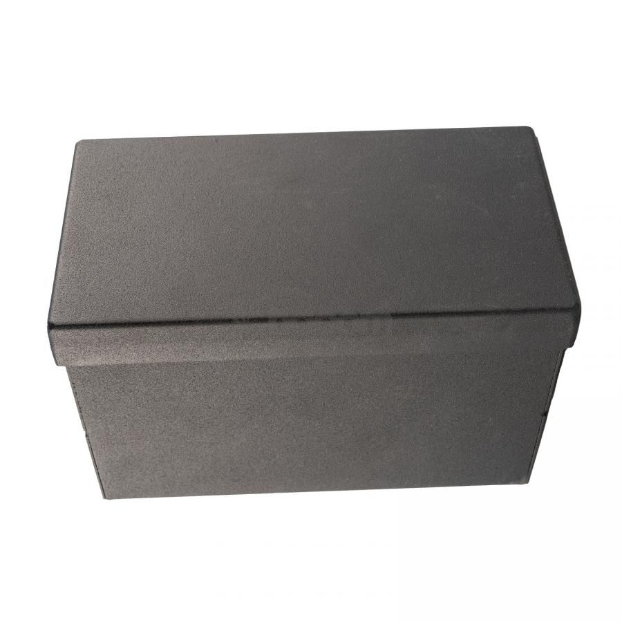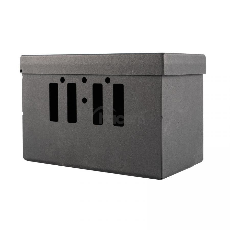 Ochranná kovová skrinka pre batériu 12V s vnútornými rozmermi 85 x 165 x 100mm (D x Š x V).