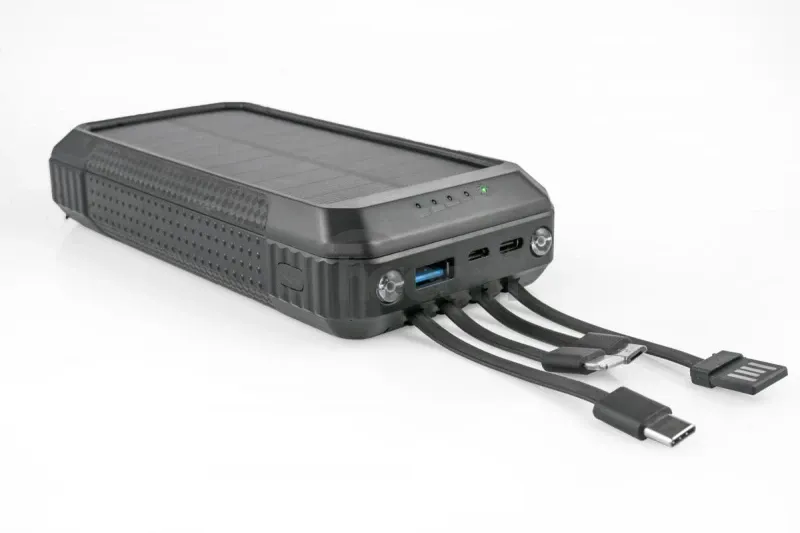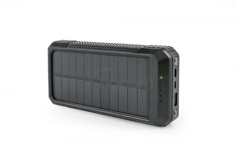 - solárnym panelom (2W, nejedná sa o dominantný spôsob dobíjania, na dobíjanie powerbanky vždy preferujte nabíjanie z elektrickej siete, solárne nabíjanie je vhodné ako doplnkové dobíjanie v prírode a iných outdoorových aktivitách).