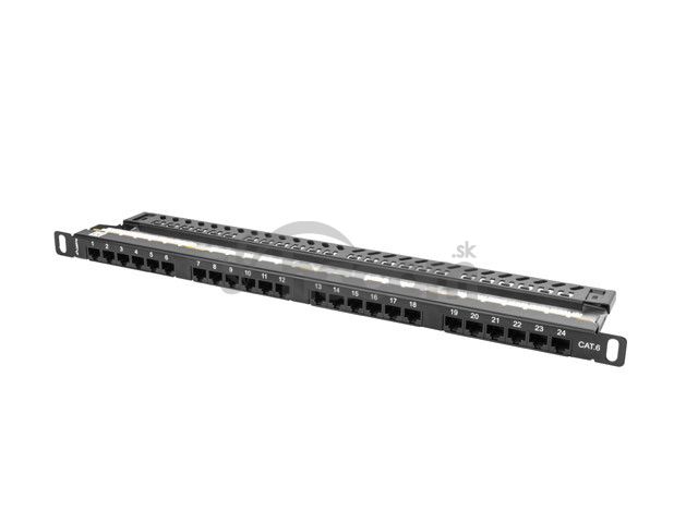 PATCH PANEL 24 PORTOV 0,5U 19" CAT.6 UTP ČIERNY LAN PPU6-0024-B