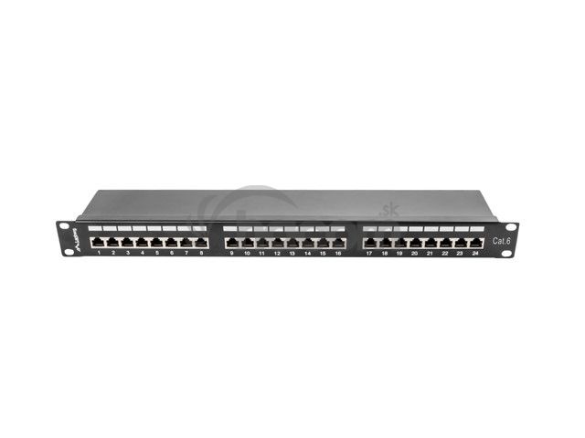 - PATCH PANEL 24 PORTOV 1U 19" CAT.6 FTP TENENÝ ČER PPS6-1024-B