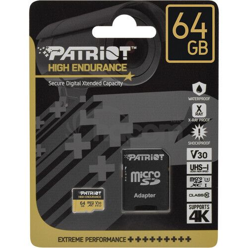 - Patriot microSDXC 64GB Hight Endurance V30 U3 až 95MB / s PEF64GE31MCH