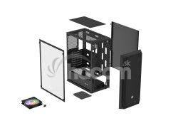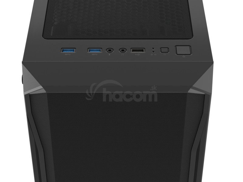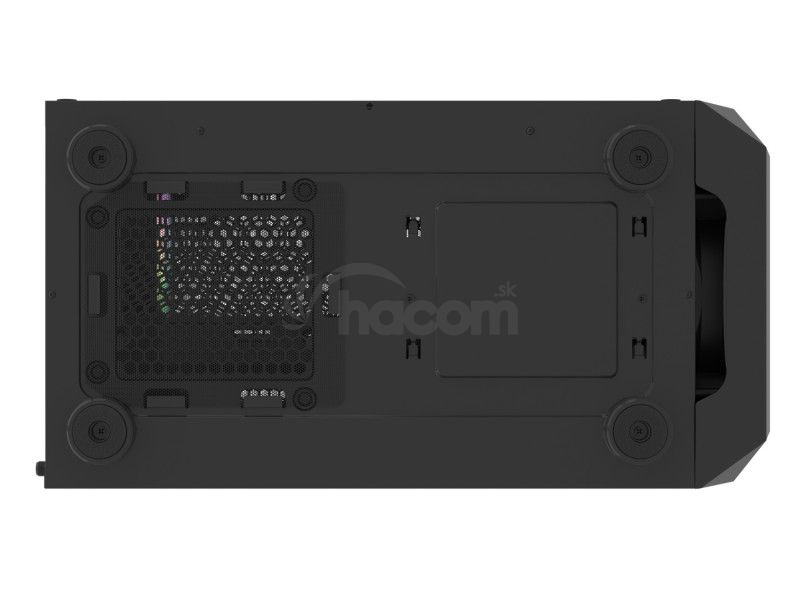 Futuristický geometrický tvar sa bude páčiť ako hardcore hráčom, tak aj tým, ktorí dávajú prednosť decentnejšiemu dizajnu. Ľavý bočný panel z tvrzeného skla je príležitosťou na odhalenie vnútrajška skrine a výkonných komponentov ukrytých vo vnútri - tiež s RGB, najmä preto, že inštalovaný ventilátor je predsvietený.