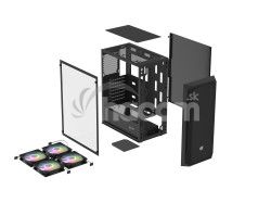 Futuristický geometrický tvar sa bude páčiť ako hardcore hráčom, tak aj tým, ktorí dávajú prednosť decentnejšiemu designu. Ľavý bočný panel z tvrdeného skla je príležitosťou na odhalenie vnútrajška skrine a výkonných komponentov ukrytých vo vnútri - tiež s RGB, najmä preto, že inštalované ventilátory sú predsvetlené.