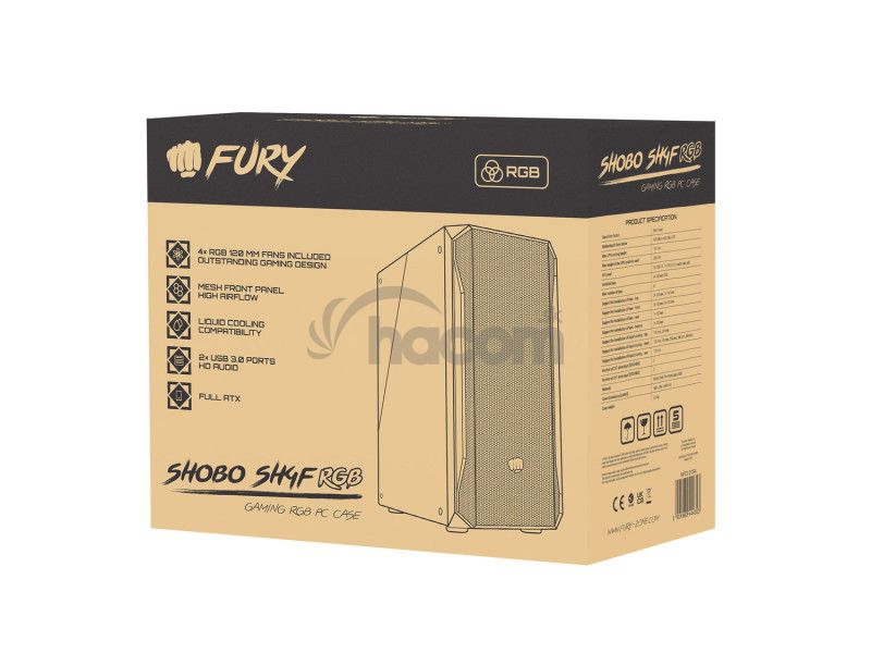 HERNÁ SKRIŇA SHOBO SH4F RGBPC skriňa Fury Shobo SH4F RGB - inteligentná počítačová skriňa s účinným chladením a RGB podsvietením. Skriňa Shobo SH4F RGB je kompatibilná so základnými doskami ATX a systémami vodného chladenia (AIO 360/280/240/140/120), je vybavená až 4 ventilátormi RGB, prednou sieťovinou a ochranou proti prachu.
