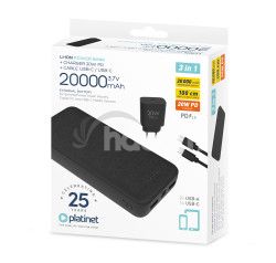 Platinet SET 3v1 Powerbanka 20000 mAh + Nabíjačka 20W Power Delivery, kábel USB-C 1m, čierna PLAPMPB20SETB