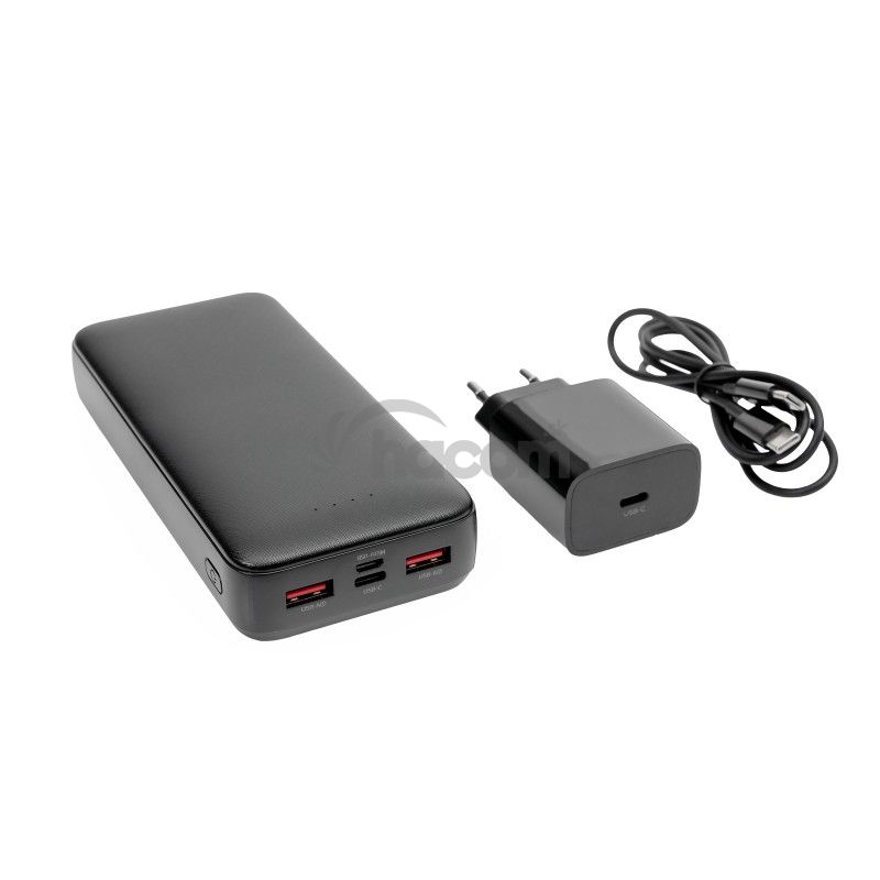 • Powerbanku s kapacitou 20000mAh s tromi portami: 1xUSB-C; 2xUSB-A, ktorý zabezpečí výkon až 20W pri nabíjaní s technológiou PD (Power Delivery).
