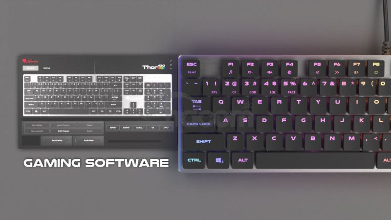Súčasťou Thor 420 RGB je tiež pokročilý softvér, ktorý umožňuje nahrávať ľubovoľné makrá a spustiť pomocou jediného tlačidla smrtiace smršť. Okrem toho softvér umožňuje spravovať RGB podsvietenie a 22 svetelných efektov.