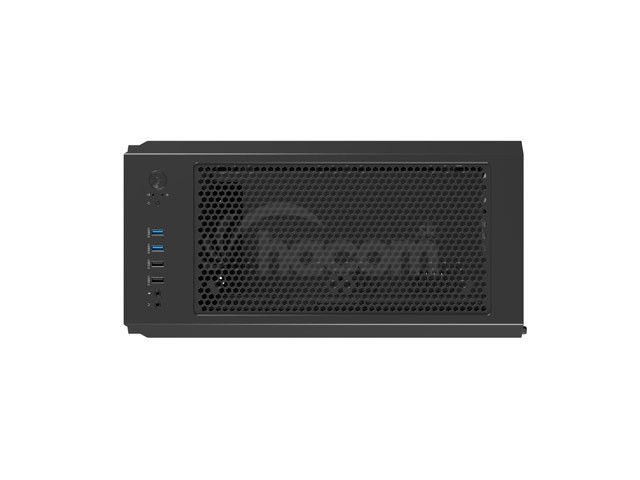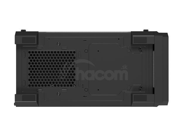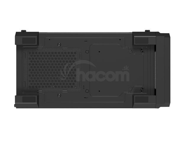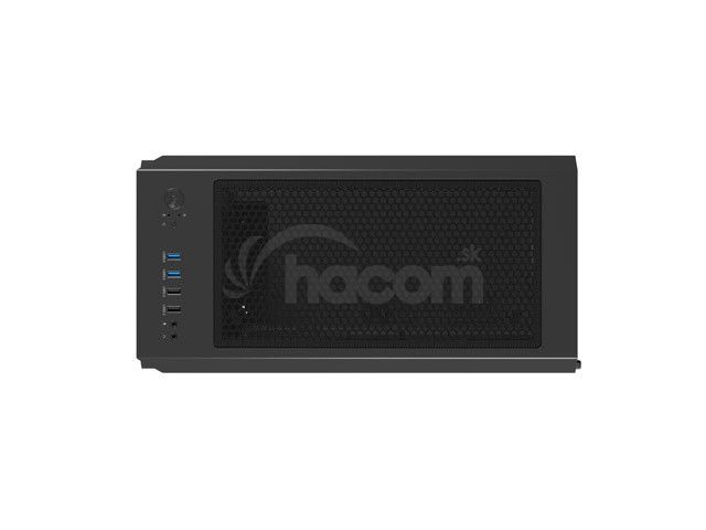 Na hornej strane skrine nájdete až 4 porty USB, z toho 2 USB 3.0. Pre vaše pohodlie sme zahrnuli aj dve zásuvky jack, aby ste mohli pripojiť slúchadlá alebo mikrofón čo najbližšie. Aby toho nebolo málo, je tu tlačidlo zodpovedné za zmenu režimov báječného ARGB podsvietenia, aby vyzeralo tak, ako si v danej chvíli prajete.