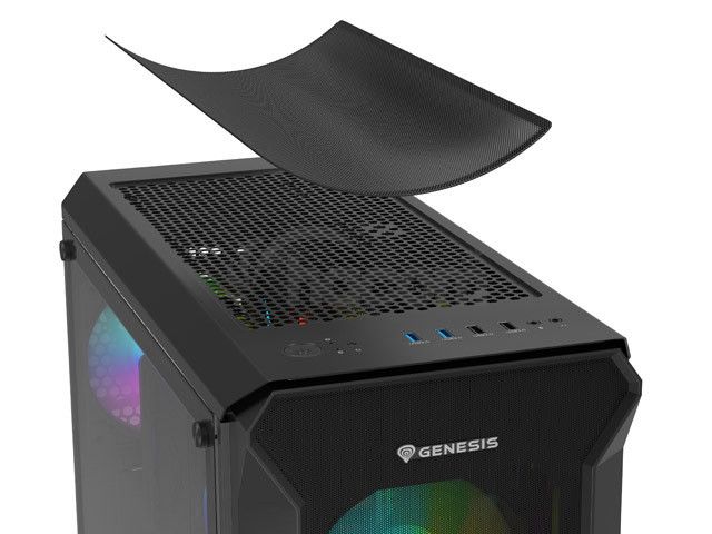 Skriňa je vybavená štyrmi robustnými a veľmi tichými ventilátormi Genesis Oxal ARGB 120. Irid 505 V2 ARGB navyše umožňuje montáž ďalších dvoch ventilátorov, vrátane 140 mm na prednej a hornej strane. Vďaka tomu môže mať vaša skriňa až šesť ventilátorov!