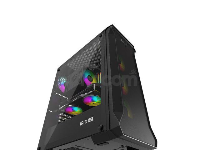 Puzdro má perforovanú prednú stranu a bočný panel je vyrobený z tvrdeného skla s estetickou čiernou potlačou. Až 4 kúzelne podsvietené ventilátory ARGB premenia vašu skriňu s komponentmi na skvostné umelecké dielo. Irid 505 V2 ARGB zaujme nielen funkčnosťou, ale aj neobvyklou škálou vizuálnych zážitkov.