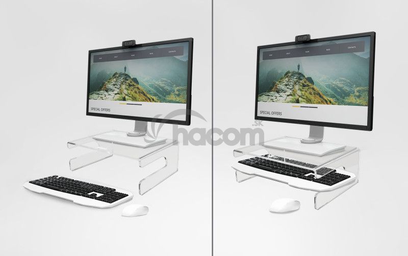 - Podstavec pod monitor s výrezom na klávesnici- Vysoko kvalitný 6 mm číry akryl