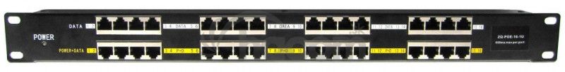 Tienený panel integrujúci 16 pasívnych POE injektorov vhodný pre napájanie až šestnástich aktívnych prvkov v prevedení do 19" racku.Univerzálne riešenie pre vzdialené napájanie väčšieho počtu aktívnych prvkov s integrovaným extraktorom po ethernete.