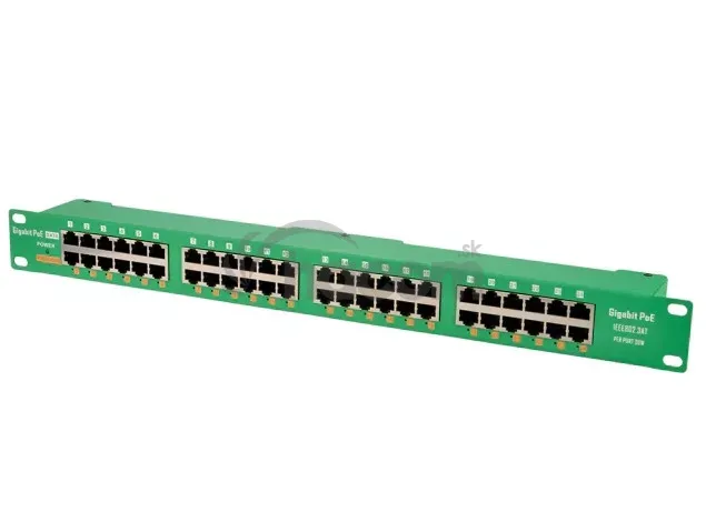 Panel integrujúci 24 gigabitových tienených aktívnych POE injektorov s napájacím rozsahom 48V (802.3af) - 57V (802.3at).Univerzálne riešenie pre vzdialené napájanie väčšieho počtu aktívnych prvkov s integrovaným extraktorom po UTP kabeláži.
