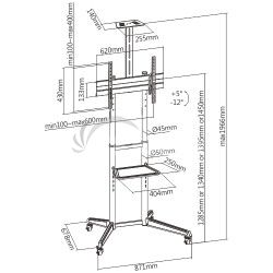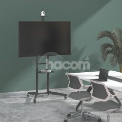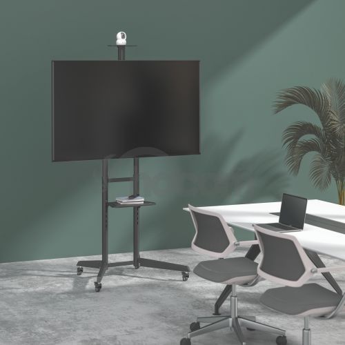 Všestranný pojazdný stojan Brateck T1040T je určený na inštaláciu TV s plochou obrazovkou s uhlopriečkami od 37“ do 70“ a hmotnosťou až 50 kg. Stojan poskytuje stabilnú podporu a vďaka integrovaným kolieskam s možnosťou aretácie zároveň umožňuje ľahké a bezpečné premiestnenie podľa potreby. Montážna doska na upevnenie TV je nastaviteľná v štyroch rôznych výškových úrovniach, jednoduchá zmena náklonu TV v rozsahu +5°~-12° potom umožňuje nastavenie optimálneho pozorovacieho uhla. Stojan je navyše vybavený jednou výškovo nastaviteľnou poličkou na kameru s nosnosťou 5 kg a jednou výškovo nastaviteľnou poličkou na príslušenstvo s nosnosťou 5 kg. Vďaka tomuto príslušenstvu je stojan vhodný na organizovanie telekonferencií, ale aj na využitie pri kancelárskych a školských prezentáciách, alebo pri domácej zábave.Hlavné vlastnosti: