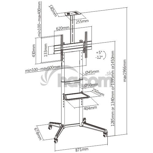 • Montáž doska pre upevnenie TV je nastaviteľná v štyroch výškových úrovniach – 1285, 1340, 1395 alebo 1450 mm