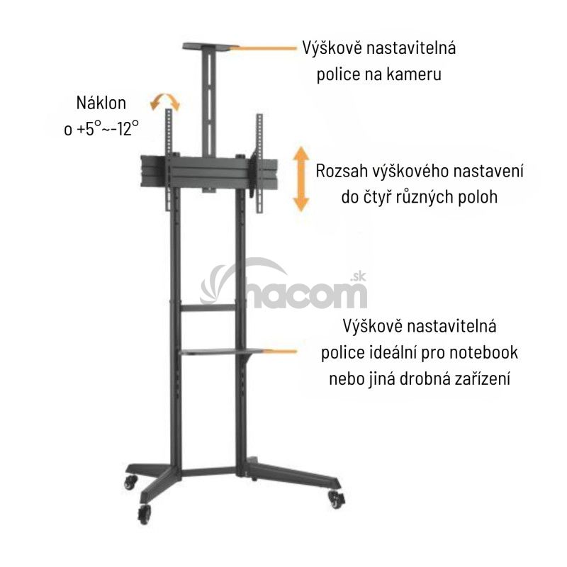 • Výškovo nastaviteľná polica s nosnosťou až 5 kg na kameru