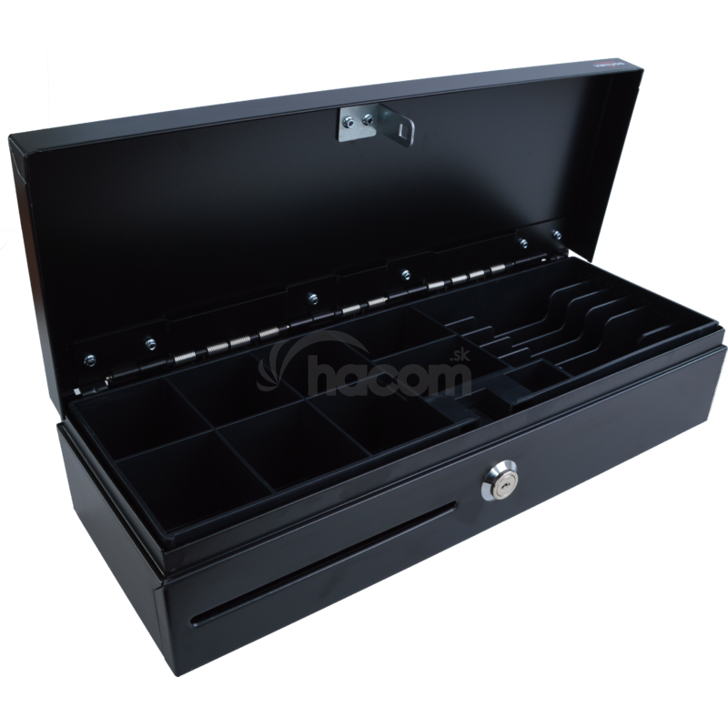 * Komplet obsahuje: zásuvku s vekom, vnútorný plastový zakladač na peniaze a mince, kovový uzamykateľný kryt na zakladač