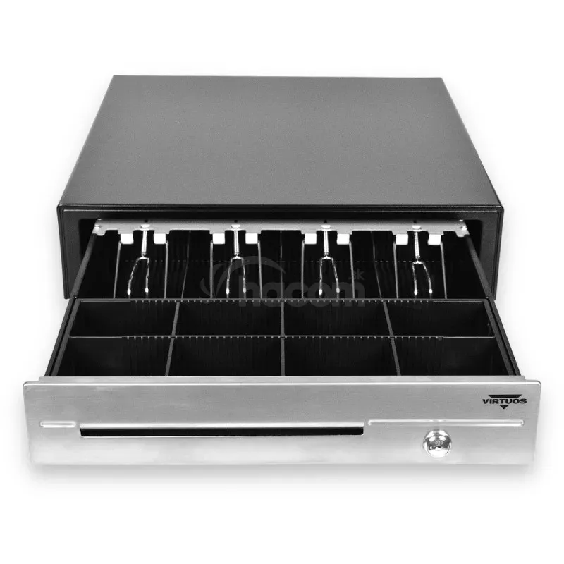 Pokladničná zásuvka C430D - s káblom, kovové držiaky, nerez panel, 9-24V, čierna EKN0116