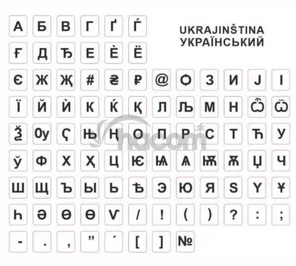 Ukrajinská nálepka na klávesnici - biela*Biela farba písma a priehľadné pozadie prelepov