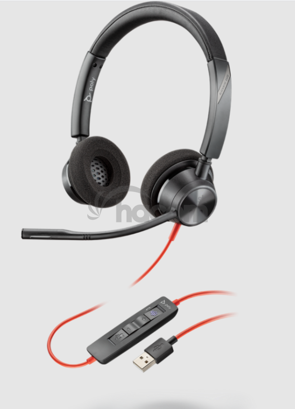 - Poly Blackwire 3320. USB/Stereo/USB/Drôt/MS/Čierna 213934-01