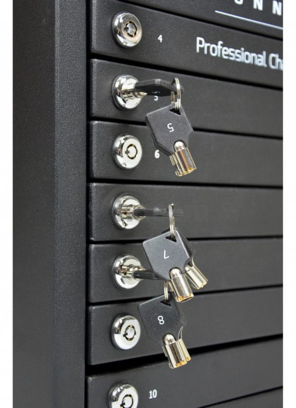 Najefektívnejšie riešenie pre bezpečné nabíjanie až 10 zariadeníOriginálna napájacia skrinka s funkciou dobíjania a individuálnych zámkov pre každé zariadenie zvlášt.