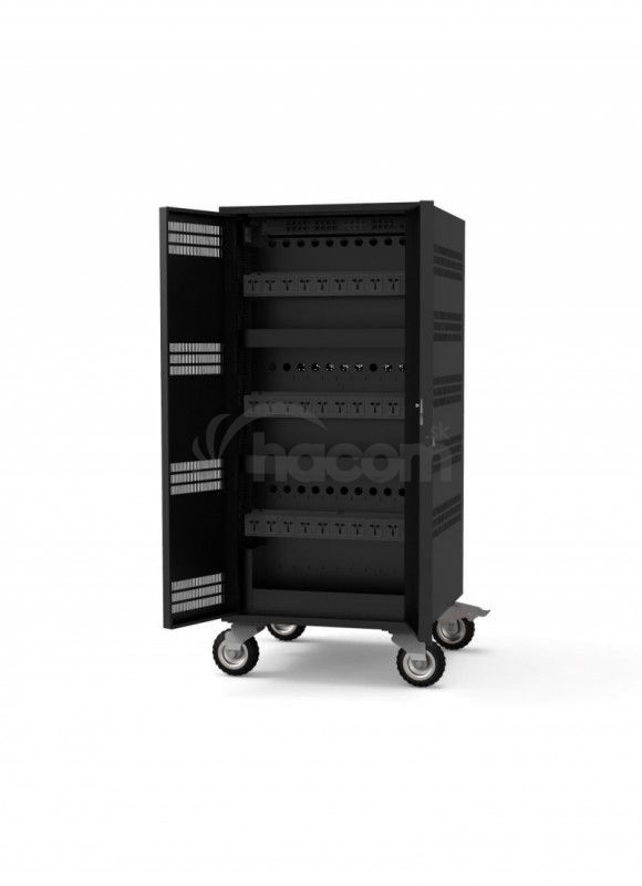 Táto nabíjacia skriňa umožňuje zabezpečiť a nabíjať až 30 notebookov naraz.Každé jednotlivé oddelenie má zásuvku na striedavý prúd. Prepäťová ochrana zaistí bezpečnosť vašich zariadení.