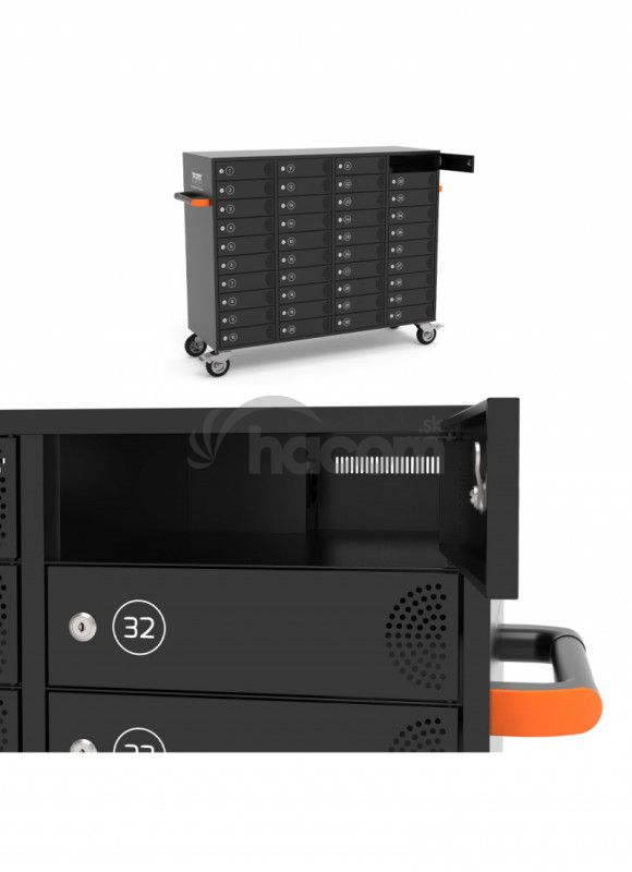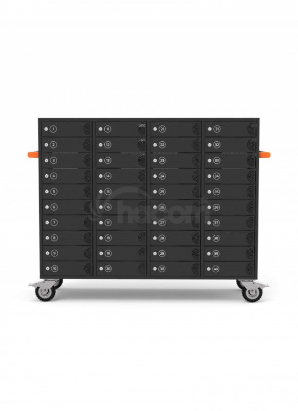 Nabíjacia skriňa so 40 jednotkami a samostatnými dvierkami umožňuje nabíjať, bezpečne ukladať a spravovať napájacie káble až pre 40 tabletov, notebookov, mobilných telefónov a ďalších elektronických zariadení. Odporúča sa pre vzdelávacie, kancelárske, obchodné, maloobchodné, priemyselné a zdravotnícke prostredie. Kovová skriňa podporuje ochranu zariadenia vďaka oceľovej konštrukcii, ktorá zaisťuje dlhú životnosť. Univerzálny a flexibilný dizajn nabíjacej skrine zaručuje, že bude vhodná aj pre všetky budúce zariadenia.Každé jednotlivé oddelenie má zásuvku na striedavý prúd. Prepäťová ochrana zaistí bezpečnosť vašich zariadení.