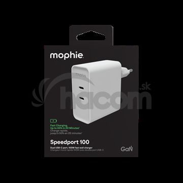 Mophie Speedport 100 - výkonná GaN nabíjačka s výkonom 100 WNabíjajte svoje zariadenia rýchlejšie a efektívnejšie s Mophie Speedport 100 . Tento adaptér ponúka dva USB-C PD porty s celkovým výkonom až 100 W, čo znamená, že iPhone nabijete na 50% iba za 30 minút. Ideálne pre telefóny, tablety aj notebooky.