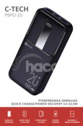 - Powerbanka C-tech 20000mAh, Li-Pol, 22,5 W, USB-C/USB-A/micro USB PBPD-20