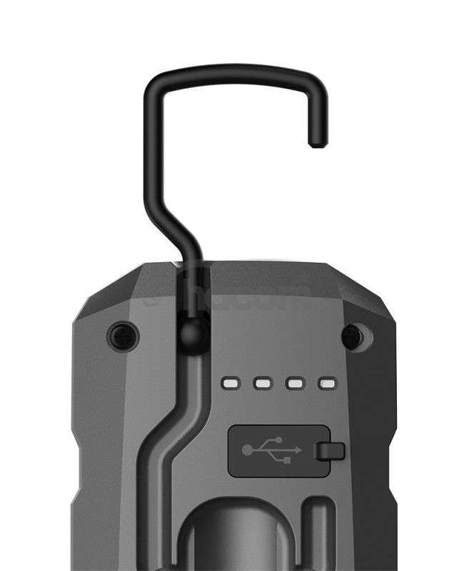 • Praktické možnosti uchytenia: Baterka je vybavená háčikom na hornej časti pre ľahké zavesenie, magnetom na spodnej strane pre pripevnenie k kovovým povrchom a ohybným držiakom, ktorý umožňuje postavenie baterky do požadovaného uhla.