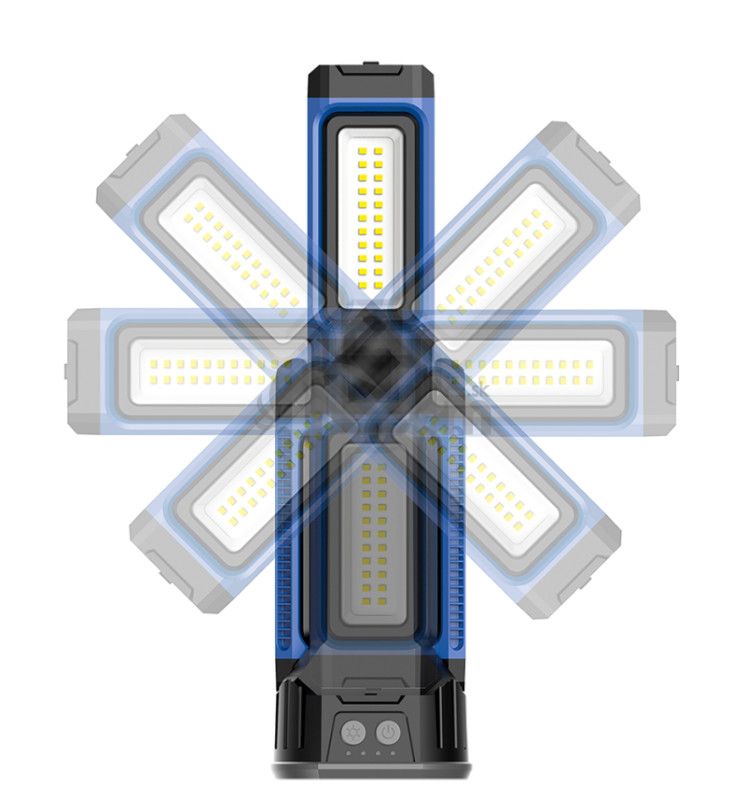 Viking B69571 je výkonné a všestranné pracovné svetlo pre náročné podmienky. Vďaka inovatívnej konštrukcii s tromi rozkladacími krídlami poskytuje svetlo bez mŕtvych uhlov, takže rovnomerne osvieti celý pracovný priestor.