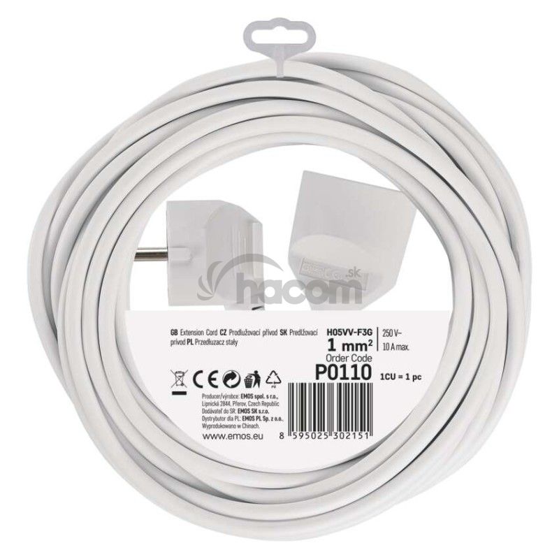- Predlžovací kábel 10 m / 1 zásuvka / biely / PVC / 1 mm2 P0110