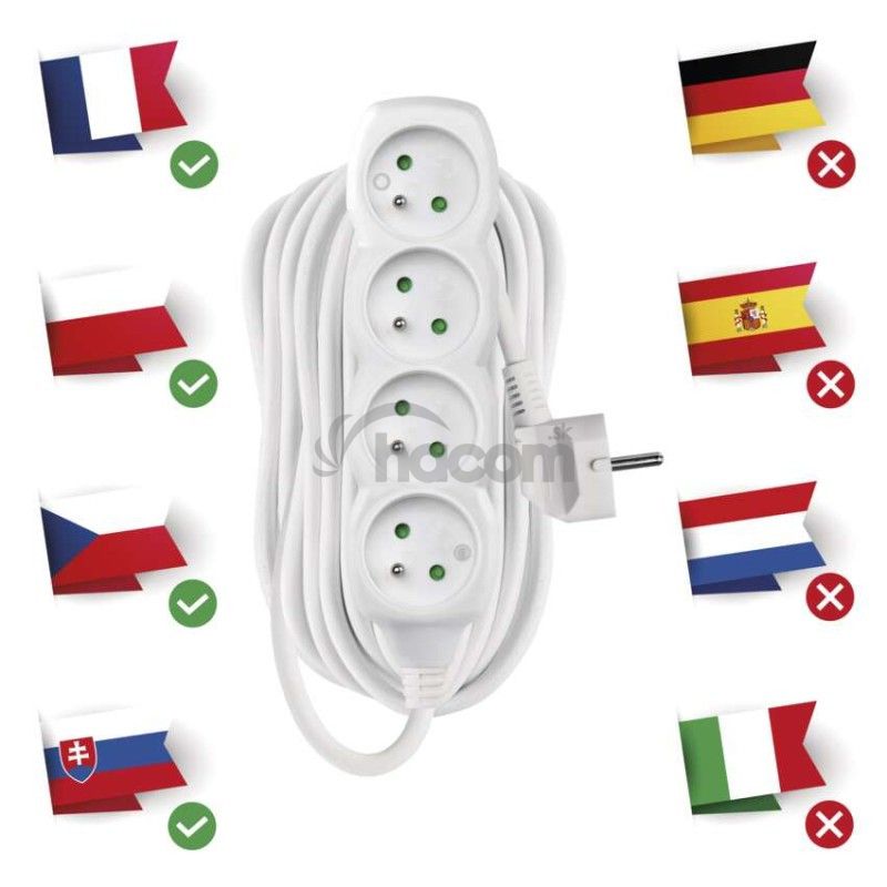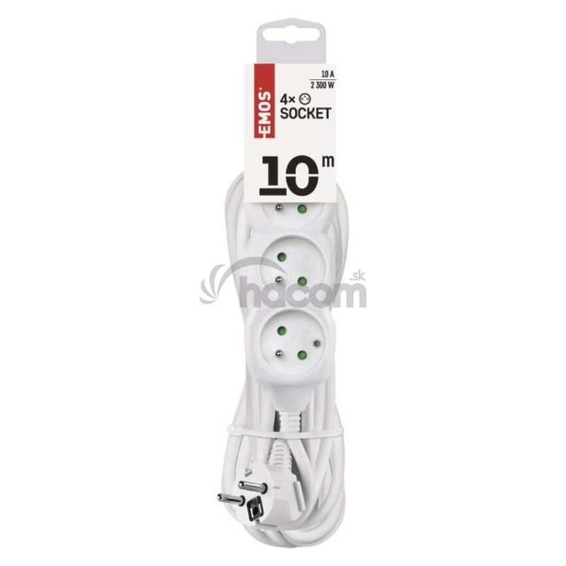 - Predlžovací kábel 10 m / 4 zásuvky / biely / PVC / 1 mm2 P0410
