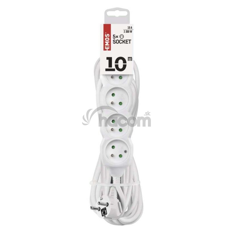- Predlžovací kábel 10 m / 5 zásuviek / biely / PVC / 1 mm2 P0510