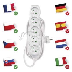 - Predlžovací kábel 10 m / 5 zásuviek / biely / PVC / 1,5 mm2 P0510R