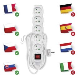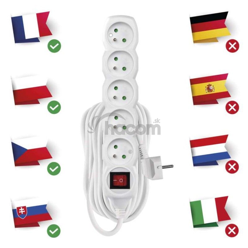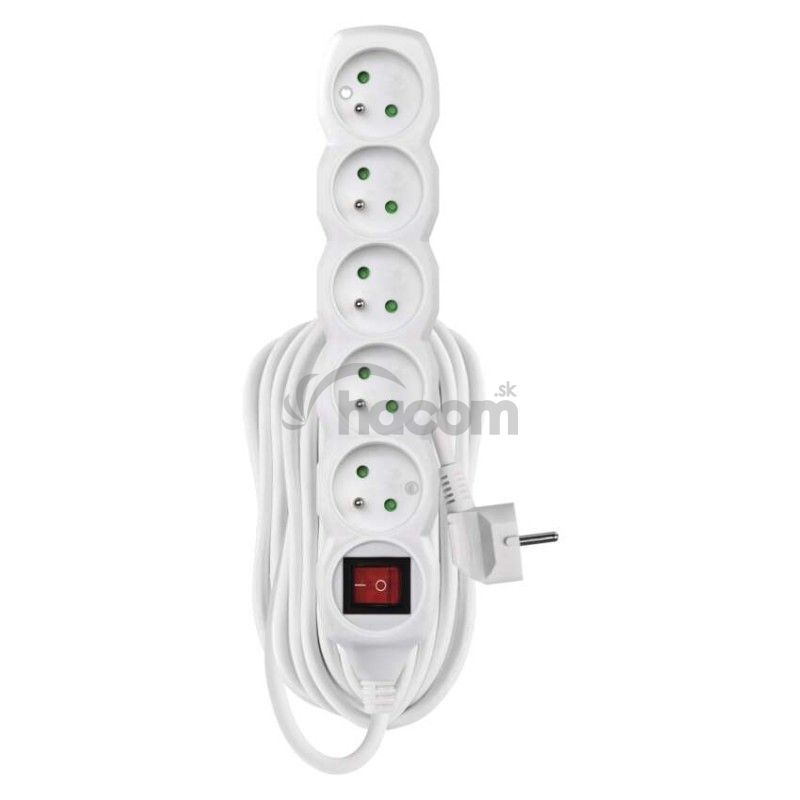 - Predlžovací kábel 10 m / 5 zásuviek / s vypínačom / biely / PVC / 1,5 mm2 P1510R