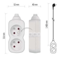 - Predlžovací kábel 1,4 m / 2 zásuvka / biely / PVC / 1 mm2 P02114