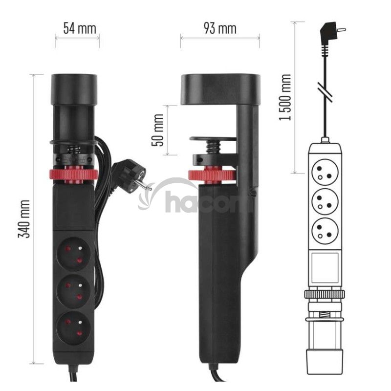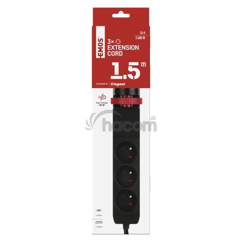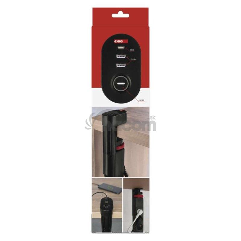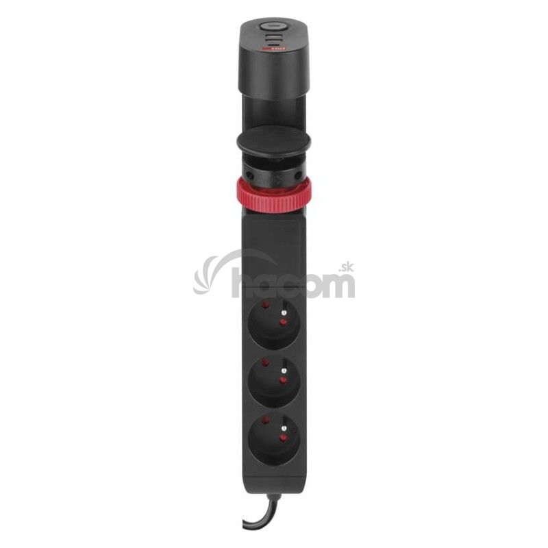 - Predlžovací kábel 1,5 m/3 zásuvky/vypínač/stolný držiak/USB/čierny/PVC/1,5 mm2 P1311PD