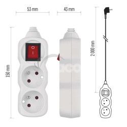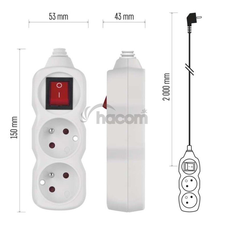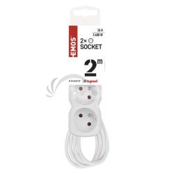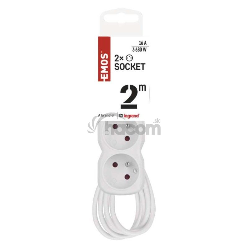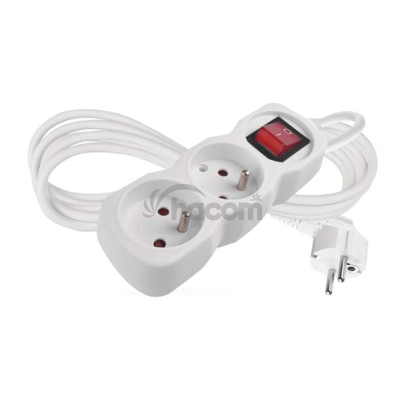 - Predlžovací kábel 2 m / 2 zásuvky / s vypínačom / biely / PVC / 1 mm2 P1212